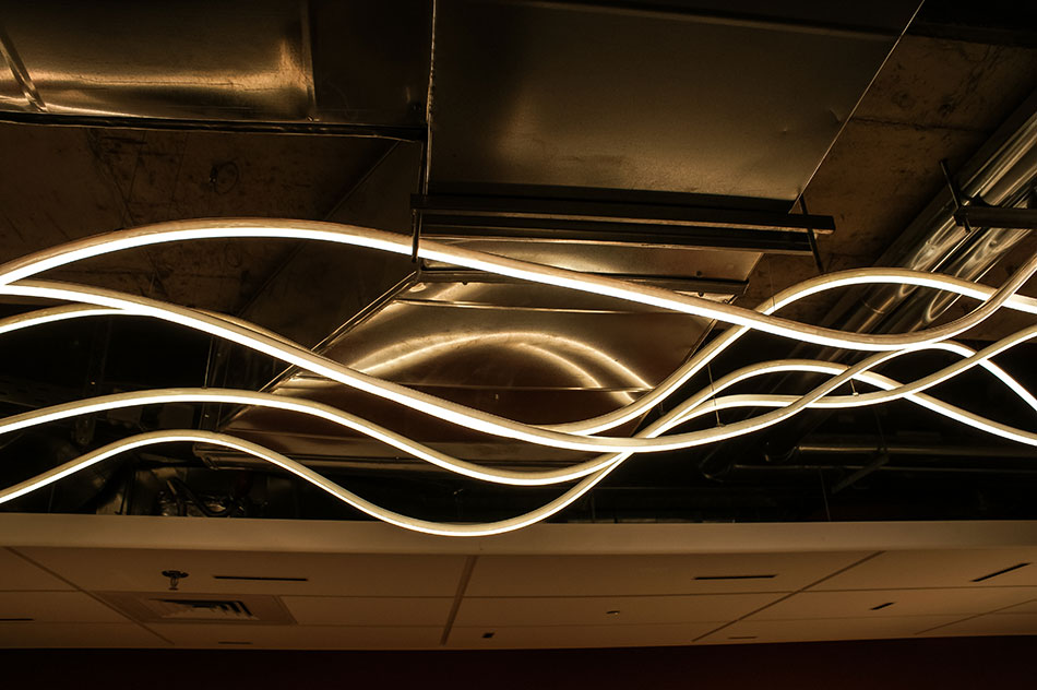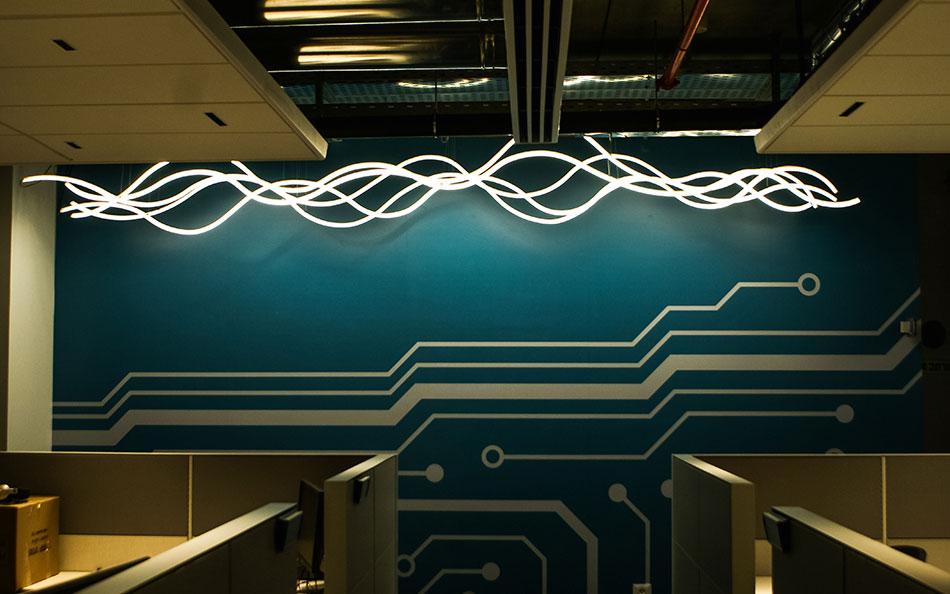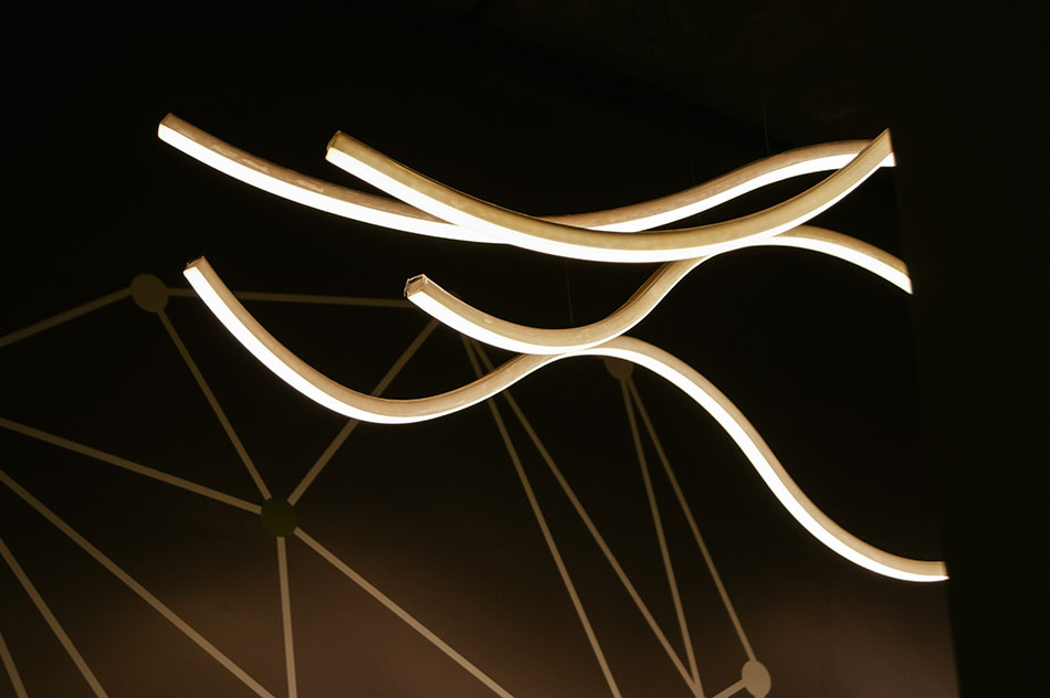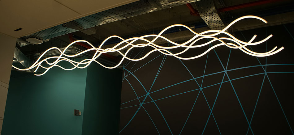 For the offices of Broadcom in Yakum, Israel Lighting Designer Eran Aronson of Aronson Lighting Design and RTLD Lighting Design created a special installation with 31 VENUS luminaires. Each luminaire was individually bent on site by him. Therefore, no luminaire is like the other, and all differ in their bends and hanging technique. Overall, the project produced 31 extraordinary luminaires made of 775 meters of flexible VarioLED™ Flex VENUS, 775 meters of aluminum profile, 775 meters transparent shrink tubing, 775 specially designed connectors, 775 silicone-coated steel cables, 775 ceiling terminals and all that, in more than 775 hours of planning, designing and installing. Eran Aronson captured this exciting process in a video, which was produced in collaboration with Yoni Gofer. Enjoy watching "Light Sketch"!