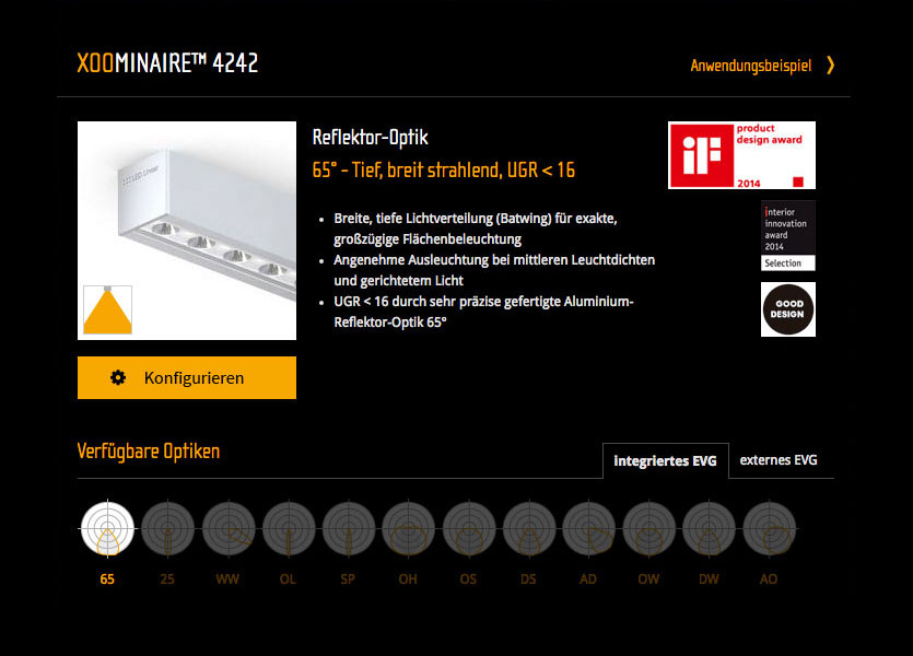 At Light + Building in April 2016, we have already presented the prototype of the configurator as "Preview". Today we present the configurator with a new modern look, amazingly simple navigation, clearly arranged filter functions and playfully easy selection options. In a flash, you put together your personally specified luminaire.