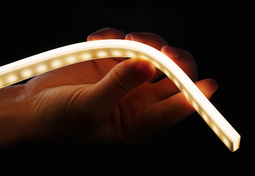 The AMOR convinced the jury especially with its diverse applications: “VarioLED™ Flex AMOR is a miniaturized, moulded, IP67-protected and flexible LED light strip in opal, which is ideally suited to a variety of applications in the areas of drywall installation, furniture construction, decorative accent lighting and external facades. The homogeneous light quality combined with an unprecedentedly small cross-section of just 5 x 13 mm (W X H) is captivating. The VarioLED™ Flex AMOR can be flexed horizontally to a minimum radius of just 3 cm. It’s also a winner thanks its high resistance to saltwater and UV light. A pleasing light solution that opens up a variety of design possibilities.” (Jury Statement: Anne Højgaard Jørgensen | Hartmut Schürg | Aleks Tatic)