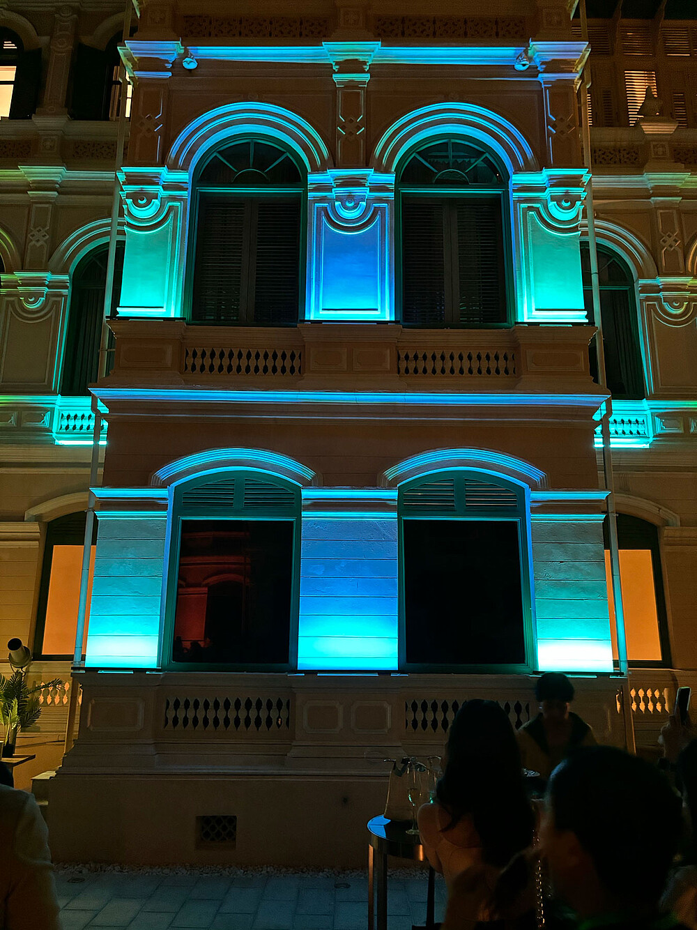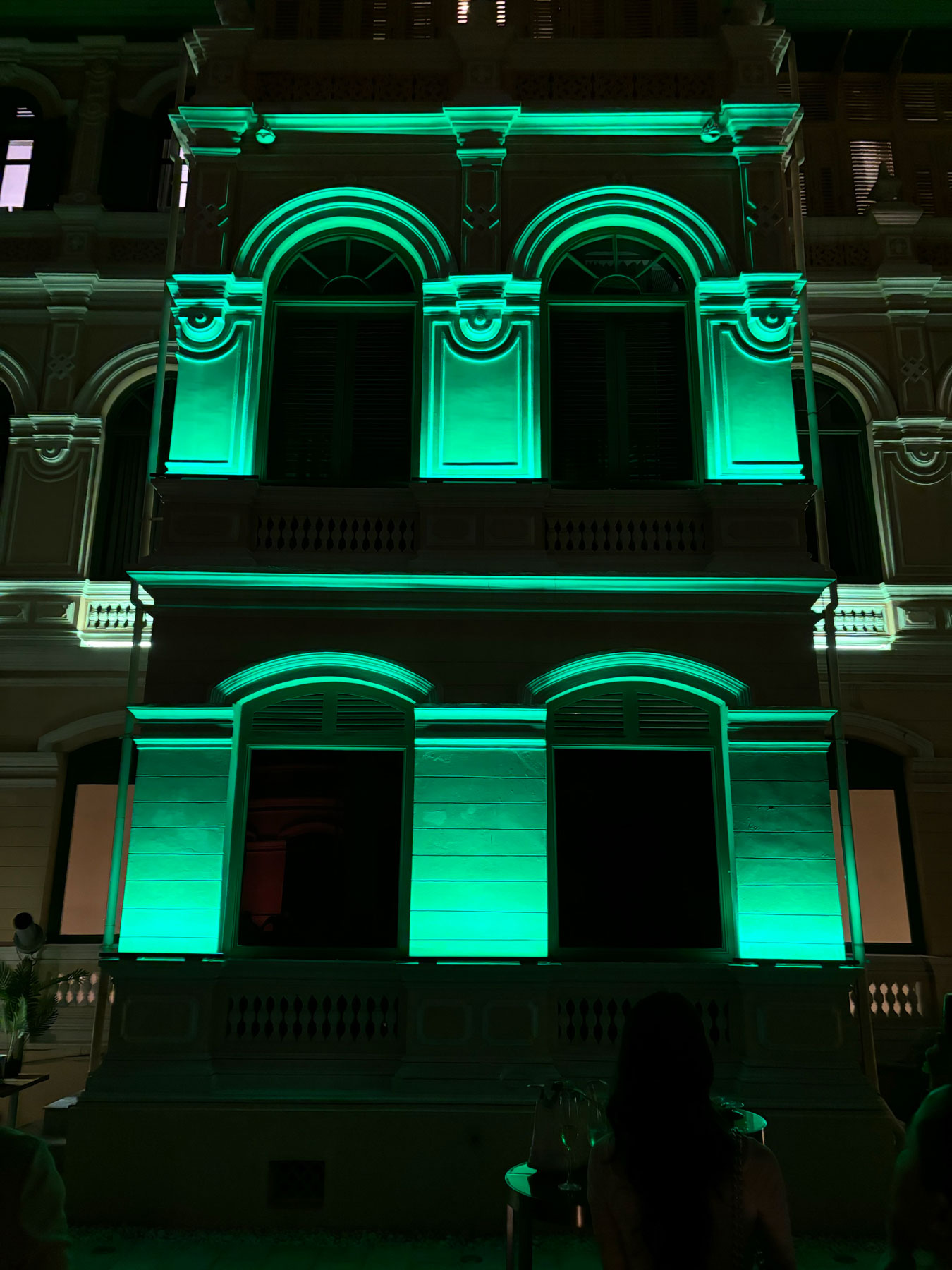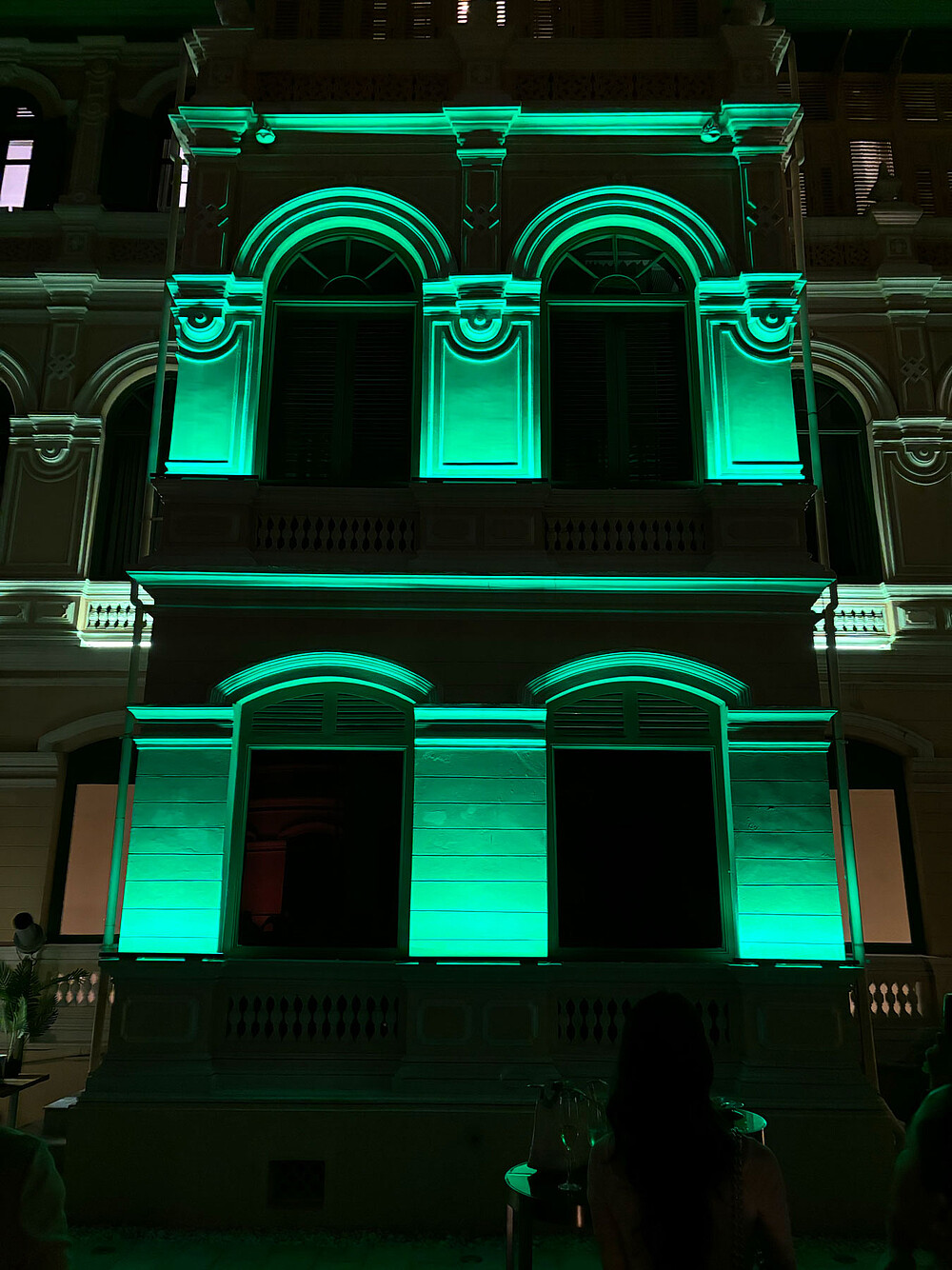 We are particularly proud to showcase our LED Linear™ products live. Our ADONIS ARCHITECTURAL IP67 luminaires are illuminating the facades of the venue, while the VENUS True Color Optics are installed along the long green wall, creating a homogeneous lighting effect.