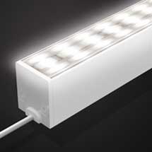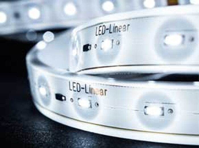 New design freedom with HYDRALUX™ – depending on the step measurement this luminaire can be cut to the desired length on site and then easily be assembled by adhesive bonding. The elegant and filigree flexible linear luminaire with reflective, white base profile is available with up to 1,637 lm/m and in IP67. It is waterproof and UV-protected and two lights can be joined without light gap. The thoughtful concept and the small cross section of 12,5 mm x 3,5 mm (WxH) allow the use almost everywhere, such as in shop-lighting or applications in furniture and shelves.