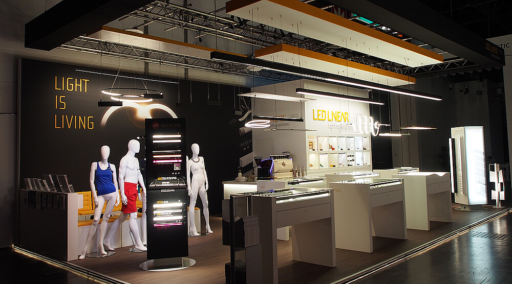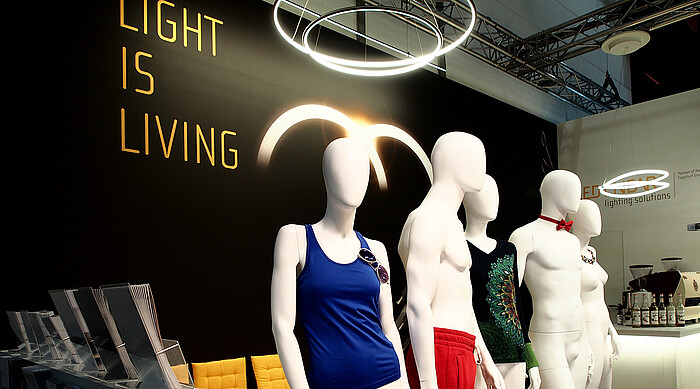 Our lighting products are where new dimensions are emerging: trends and innovations in architecture, shop fitting and store design, new solutions for high-quality lighting, energy efficiency and sustainability, as well as ideas for effective customer management. On our booth, we have adapted some applications from the shop environment.