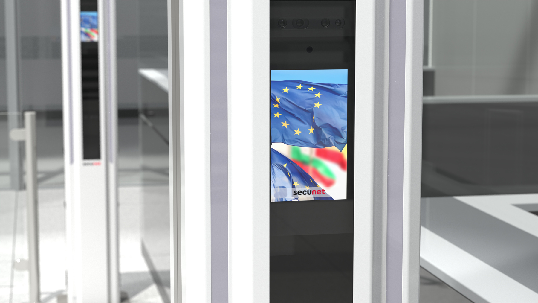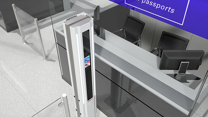 secunet has developed the easytower for capturing high-quality facial images in stationary applications. Thanks to its intuitive user guidance, the secunet easytower is easy to use for both travellers and border officials. A built-in and height-adjustable feedback screen displays the "live" recordings of the facial image camera. The traveller looks, so to speak, into a digital mirror with additional user guidance, which – available in several languages – supports the traveller regarding his optimal positioning in front of the device. Depending on requirements, a fully automatic or a manual capture mode is selected. Due to the intuitive capture process, the secunet easytower guarantees a short capture time and thus accelerates the border control process.