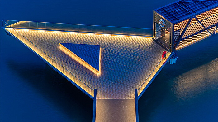 The lighting designers chose from the XOOLUM™ IP67 and VENUS IP67 LED Linear™ luminaire families for the handrail and benches to bring a warm atmosphere to the pier and provide pedestrians with perfect orientation light and a safe environment.