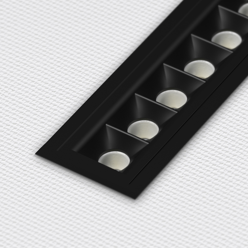 Invisible design meets brightness and high light quality: MARS is a stylish linear recessed solution for general lighting, offering minimalist design language with maximum lighting and design effects. This innovative lighting system delivers up to 147 lm/W with a color rendering of CRI > 85. The optimum glare control through a black matte finish (Black Glare Reduction) enables a UGR glare rating of UGR <13 and delivers high-quality and pleasant light. Especially user friendly is the simple, tool-free installation with mounting brackets. The MARS is available as CC (constant current) or CV (constant voltage) variant and therefore offers the advantages of both systems. The CC variant is available in standard lengths and convinces with a high luminous flux of up to 7,200 lm/m. The CV variant provides greater flexibility through scalable luminaire lengths from 250 mm up to 4,000 mm.