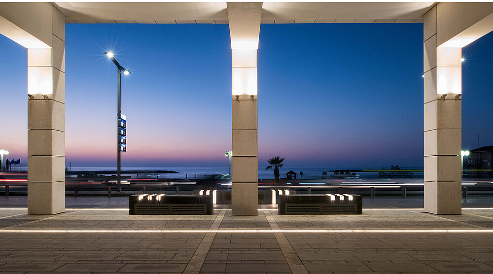 Rama Mendelsohn: The goal was to achieve a calming effect through the lighting design. This was a challenge due to the encapsulation of the LED lights, which typically increases the color temperature, making it a more harsh light. At the same time, the C5M requirements (high salinity in the air, humidity, weather corrosion, UV exposure, etc.) needed to be taken into consideration, due to the project's proximity to the sea.