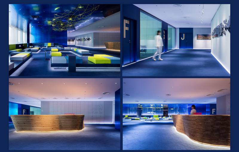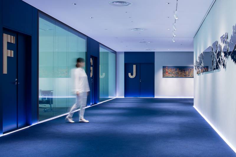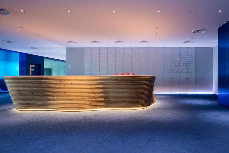 Fukuracia is a rental office near the city center and Tokyo railway station. There are 10 different types of conference rooms, from 50 sqm to 300 sqm. The premises are brand new, opened in October 2017 and are within walking distance to the districts of Marunouchi, Yaesu and Nihonbashi. As a linear light line, the ADONIS HYDRA HD15 W850 IP67 has been integrated into the floor and as well into the sofa area.