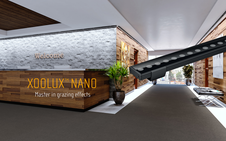 XOOLUX™ NANO’s design appoints itself as a new standard in the category of LED grazing thanks to its slim form factor, easy implementation and its solid optical performance. The updated IP classification now stretch to IP65, meaning water resistance and suitable for outdoor use. A minimalistic and tight design adds aesthetical dimensions to any project and enables installations close to the illuminated target while keeping the luminaire as discrete as possible in the architecture. The integration of the NanoRay technology optimizes output and enables an accurate light beam shaping while minimizing the color over angle for optimal grazing effects. The combination of materials, slim design and high lumen output makes XOOLUX™ NANO an outstanding product.