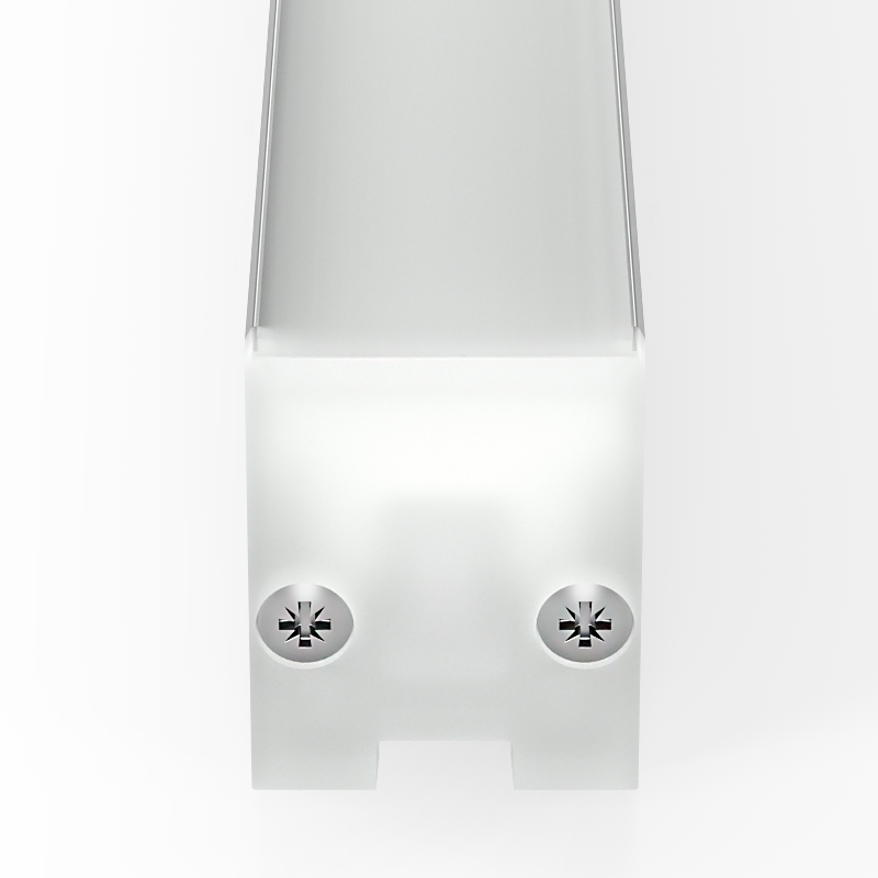 The translucent end caps combined with smart cabling and mounting management operated on the back grove the profile enables infinite light lines without dark or hot spots.