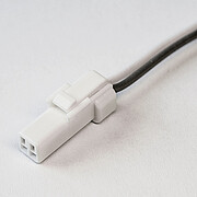 Click on connector with 2 pins for flexible, monochromatic LED tapes with a width of 9.5 mm / 0.37". 500 mm / 19.69" open cable ends (2 x 0.34 mm²). Direct plug-in method. 10 A max. current. (L x H x W) 9 mm x 4.8 mm x 9.2 mm / 0.35" x 0.19" x 0.36"