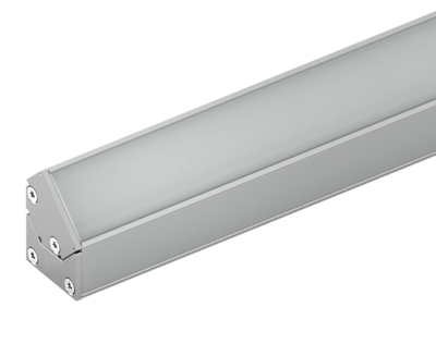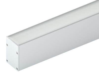 Sleek design luminaire for general lighting manufactured to length. Available as pendant, surface and recessed.