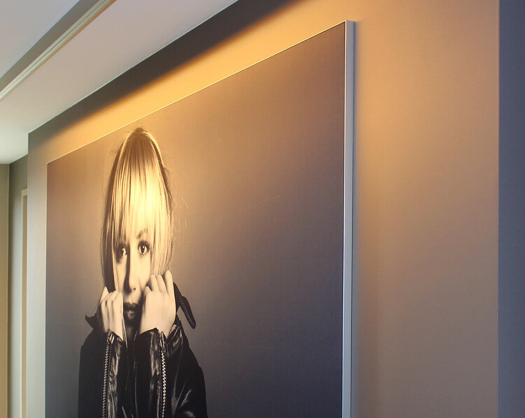 Slim and discrete surface mount wall-washer using a specular aluminum reflector tilted by 45° making the light source disappearing.