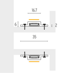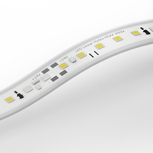 A particularly innovative feature here: the IP67 protection of the connectors can also be done on site. So this luminaire can be easily and individually adapted to any application. A white base profile with lateral fins and reflective surface ensures high lumen currents of up to 1,650 lm/m. The encapsulated light lines are a demonstration of quality workmanship and performance. With the ability to join separate units together HYDRALUX eliminates any light gap or spaces. The utilized polyurethane features a 5 times higher chemical resistance and a 10 times lower water transmission compared to typical silicones for LED applications in the relevant temperature range (-50°C to 80°C). Even in difficult applications, e. g. with only very little space, you can rely on HYDRALUX. The sophisticated concept, the minimum bending radius of only 30 mm and the small cross section of 12.5 x 3.5 mm (W x H) allow the use virtually anywhere, such as in coves, contours, furniture, shops and architectural details.