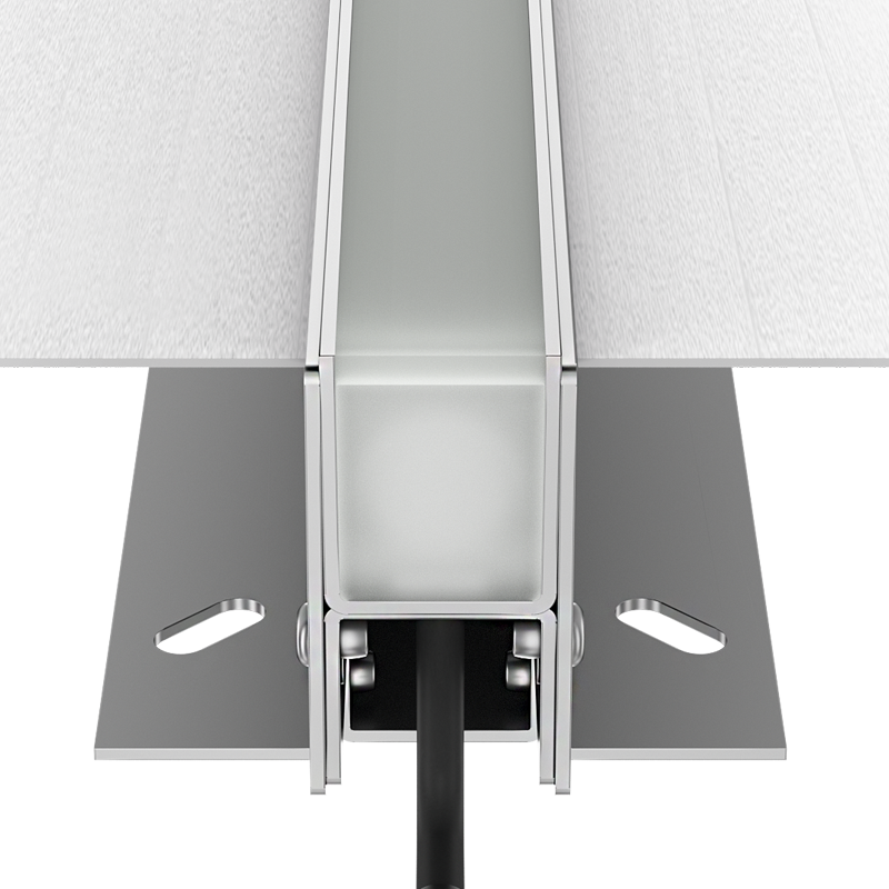 Stainless steel mounting frame with dedicated chamber for cable management and drainage.