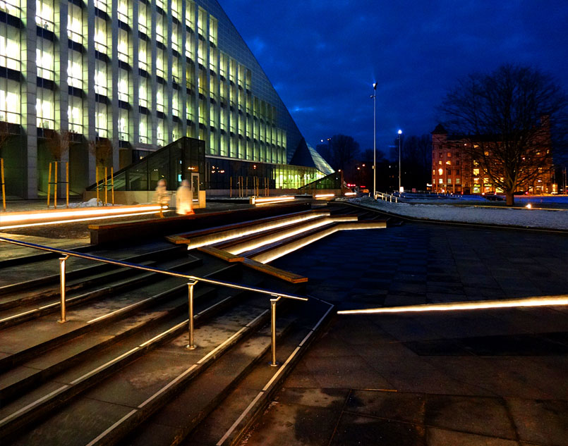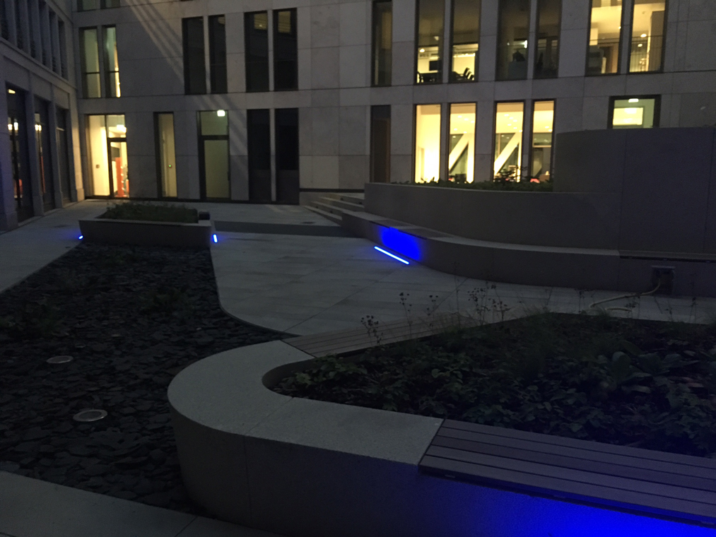 It is IK10 certified and is suitable for installation in roads and parking lots (according to DIN EN 60598-2-13) and can be walked on and driven over by vehicles with air filled tires (including trucks in delivery traffic). It is IP67 protected against water, salt water, solvents and UV radiation by a polyurethane encapsulation. The utilized polyurethane features a 5 times higher chemical resistance and a 10 times lower water transmission compared to typical silicones for LED applications in the relevant temperature range (-50°C to 80°C). Its high-quality opal encapsulation provides an homogeneous light over the entire light-emitting surface, sets appealing design accents and offers pedestrians ground-guidance and safety at night. In-ground outdoor grazing application can be realized by the precise 10° or 30° lenses. Through optical and mechanical connection it is possible to create soft light lines without light gap. It is available in two standard lengths. The mounting frames are equipped with mounting brackets and holes, allowing an easy installation. OCEANOS is suitable for the application in parks, squares, roads, hotels, reception areas, underground car parks, pedestrian walkways, bridges, airports and railway facilities.