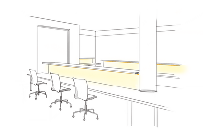 The luminaire is made of an aluminium profile with a choosable cable feed(s) and translucent end caps for an optimal gapless installation and light overlap. Each luminaire comes with its own mounting accessories of which there are 8 to choose from. Mounting profiles or clips allow for an easy and reliable installation. Thanks to its versatility the luminaire is a suitable tool for a very wide variety of applications both direct and indirect such as general lighting, coves, counters, walls, corridors, retail, hospitality, indoor facades and architectural details.