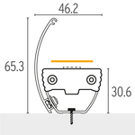 5 cm long, surface mounting brackets. Installs with screws to surface. The product can be tilted every 5 degrees inside the bracket. Recommended to use every 50 cm.