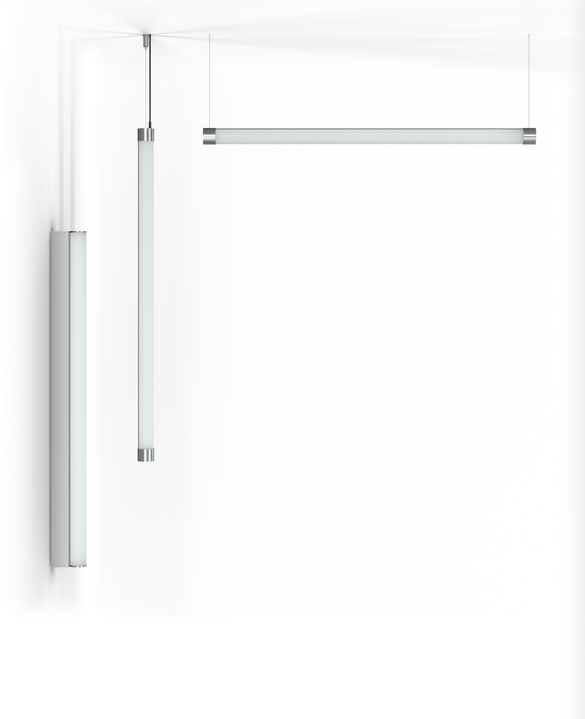 It combines industrial style with elegant aesthetics and expresses its individuality with three colored end cap options. Absolutely homogeneous light and a beam angle of almost 360° degrees speak for themselves too. End caps, which are made from one piece to implement a wall thickness of only 1 mm emphasize the high demands of this interior light. It is available as surface mounted and pendant version, whereby vertically and horizontally pendants are possible. As an eye catching design element it is suitable for a variety of applications in indoor areas, such as foyers and reception areas, libraries, corridors, shop in shop, restaurants and hotels.